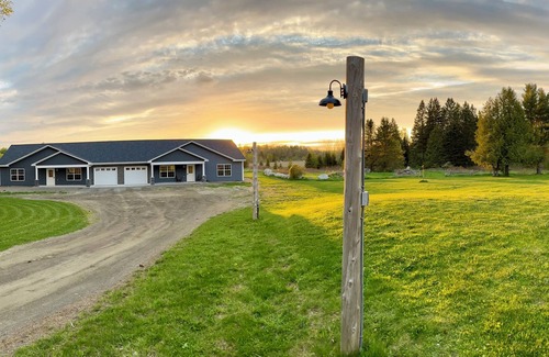 This new apartment unit was just completed in mid 2024. It is located only 6 minutes outside of Houlton in a quiet country setting. The unit is handicap accessible with no steps at the front or back doors, wide hallways, and 3' doorways in every room. This is a spacious 2 bedroom, 2 bathroom home. The master bedroom has a queen bed, amazing views, and a large walk in closet. The large master bathroom has a custom tiled shower and plenty of storage space. The second bedroom has both a full bed and a twin bed. The second large bathroom has a tub/shower combo. The open concept kitchen and living room area has high lofted ceilings and would be great for family gatherings. The large kitchen is ideal for those looking to save some of their vacation budget by preparing food themselves. An air mattress could be set up in the living area if extra sleeping space is needed. A heat pump system provides both air conditioning and heat for quiet comfort throughout the year. A large pantry with washer/dryer is available right off the kitchen. Wireless internet. A gas grill is provided seasonally for outdoor cooking. The front door has a keypad for easy access. Garage not included in the rental. Nestled between several large fields, the amazing views will provide you with both sunrises, sunsets, and often wildlife spotting. This building is located on 7-1/2 quiet acres with access to the ITS 83 snowmobile trail on the back property line. Nearby 4-wheeler trails are also a popular recreational activity in the area but are not accessible directly from the property unless by road. Many lakes and rivers for boating, fishing, and swimming are within short driving distance. The Houlton Golf Course is only 6 minutes away by car. Interstate 95 and Route 1 can each be reached by car in 10 minutes. We do not allow pets or smoking in the house. Some guests may have allergies to pets and in fairness to them we are unable to make exceptions to this policy. In an effort to accommodate families, we allow six guests at Lantern Lane with a max of four adults over 18. Contractors working in the area, two workers per unit maximum. If you need additional space, check out our new unit just completed on the other side, Meadow Lane.