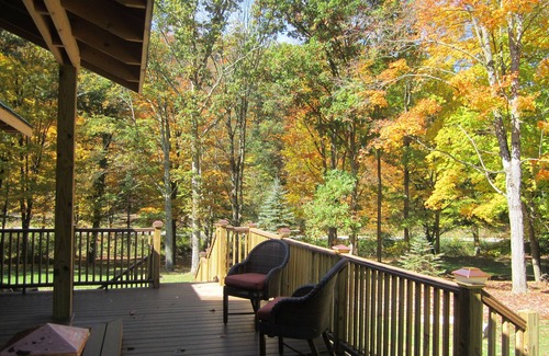 Wilderness Lodge offers the best of all worlds. Stay for a convenient trip to the areas most exciting landmarks and adventures...or to escape, relax, and unwind from all of the stresses of life. Enjoy your morning coffee on our wrap-around deck while watching the local wildlife roam the property, or relax inside in the open living area, or the inside jacuzzi tub, with the most breathtaking view of the property. Enjoy quiet, peaceful nights around our outdoor fire-pit roasting marshmallows.
