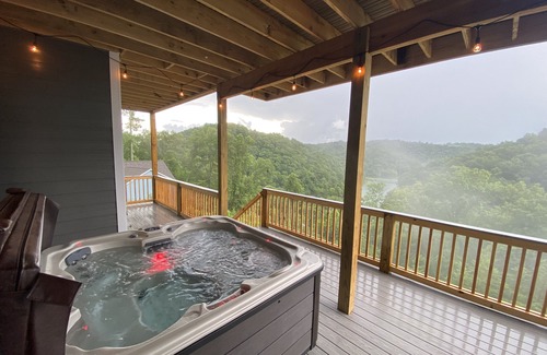 The covered deck on this level features a lighted hot tub and additional seating. This is a non smoking home. Minimum Age 27 Years for renter responsibility.