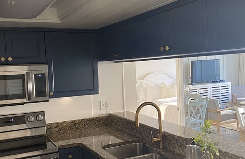 When you walk in, the ocean waves are reflected in the living and dining area, as you sit facing the tide in our living area with accents including new board and batten walls. New lamps and accessories nicely complement the area. Watch your favorite movie or game on a new 55 inch smart TV with upgraded cable and wifi connection and see the ocean roll at the same time. Walk out on the balcony for an expansive view of the Atlantic ocean and feel the breeze while you sit and enjoy your morning coffee or afternoon tea in Adirondack-type chairs. New flooring is consistent throughout all dry areas and kitchen. It really doesn't get any better than this!
