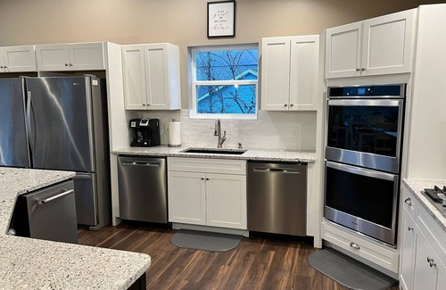 The open-concept family room features a cozy fireplace, ideal for relaxation. The gourmet kitchen is a chef’s dream, equipped with top-tier appliances and ample seating for 20, including 2 refrigerators, 2 dishwashers, an ice maker, and everything else you need for a memorable stay. Stay connected with high-speed Wi-Fi (1000 mbps) and strong 5G cell service.