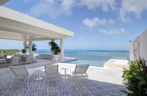 Superb Penthouse, an impeccably designed modern beachfront luxury villa located in Puerto Rico’s most exclusive residential community, The St Regis Hotel and Resort (five-star), is enclaved in the privacy of ~483 acres of lush Audubon-certified maritime forest and gardens. This terraced villa is on the fifth and sixth floor of St. Regis Residence Ocean Drive II, an exclusive golf-front residency situated only walk-out steps away from the beach and pool. Superb Penthouse guests enjoy full access to the resort amenities, which include the Beach Club, Golf Club, an 18-hole Robert Trent Jones Jr. Golf Course, Gym, Tennis Club, Lakehouse with water sports, and 483 acres of gated pristine maritime forest. Superb Penthouse is part of the Calypso Villas Refined Luxury Rental Program, which includes a dedicated concierge for the duration of the reservation. This in addition to the concierge team offered by the resort