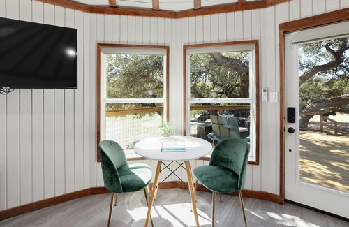 This one-of-a-kind Treehouse Yurt is your PERFECT getaway from city life! Located in the heart of Texas winery and brewery country, your day trips are only minutes away in every direction! This one bedroom is hosted by Airbnb's 2022 Top New Host of the State of Texas!