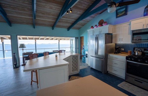 5 minute's drive to Nanny Cay Beach Resort and Marina, this property is located at 350' with the most amazing 180 degree view of the famous Sir Francis Drake Channel (with no less than 13 islands to look out over!) Our home is a very open plan, airy design with 70' of covered deck with a light and colorful "coastal living" style decor and ambiance throughout.