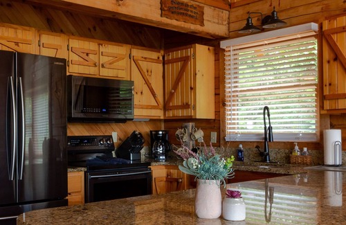 Please note that this cabin is located in the Great Smoky Mountains, where a variety of wildlife can be found, including insects, squirrels, raccoons, turkeys, bears, and more. Smoking is not allowed and this is a dog-friendly cabin (other pets are not allowed). There are dog bowls in one of the cupboards for your furry friends. Additionally, there are two exterior security cameras on the cabin for added safety.