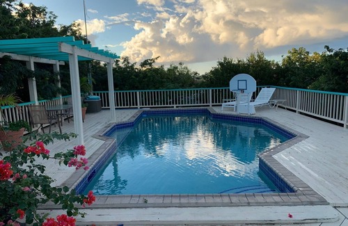 Yes, this Estate Chocolate Hole and Great Cruz Bay cottage has a swimming pool. Check the Facility Overview section for details about the pool and other available facilities.