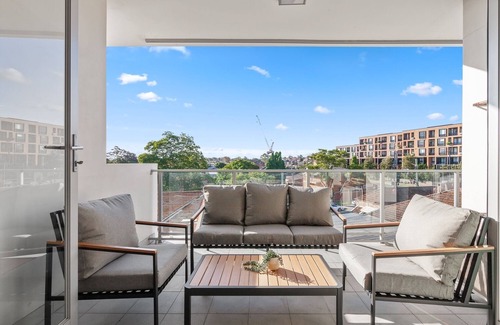 Step into this elegant and spacious apartment, where comfort meets contemporary style. The open-plan living and dining area features wooden floors, ample seating, and natural light, flowing out to a private balcony complete with a full set of outdoor furniture- perfect for morning coffees or evening unwinds. Both bedrooms are thoughtfully designed with a king & double bed, blackout blinds, bedside tables and lamps, ensuring a peaceful rest. One bedroom offers direct access to an ensuite bathroom for added privacy. The modern kitchen is fully equipped with a gas stove, oven, dishwasher, and Smeg appliances, making meal prep a breeze. The private laundry room is fitted with a washer, dryer, ironing board, and cleaning tools for your convenience. In the living area, a three-seater couch invites you to relax while enjoying the smart TV.. With thoughtful touches and all essentials provided, this retreat in the heart of Five Dock is ready to host your next Sydney stay.