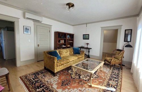 This 2 bedroom, 1 bath upper-floor apartment has been lovingly refurbished and updated. It is a fully contained, 1000+ Sq/ft private unit, with modern amenities and a private entrance. The house sits above street level, flanked by lush pine trees and a lovely westward view.