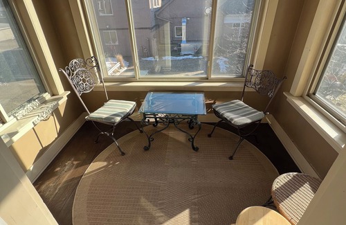 Located in downtown Kalamazoo, this updated 2 bedroom apartment is on the second floor of a 100-year-old, Craftsman style house. With a fully stocked kitchen, dedicated parking space, well lit exterior, three-season shared sun porch, access to washer/ dryer, and a prime location, it's well suited for longer stays. Enjoy what this 2-bedroom apartment has to offer.