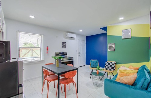 Welcome to our bright & cheerful vacation getaway, located in the heart of Houston! This 2-bedroom, 1-bathroom home away from home is perfect for those looking to experience Houston’s many urban attractions. With a fully equipped kitchen and a contemporary interior design with bright pops of color, you can experience the comfort of home while exploring all that Houston has to offer!