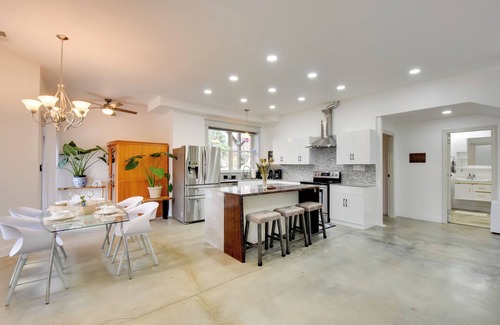 KITCHEN: Fully equipped w/ stainless steel appliances, dishwasher, microwave, refrigerator, stove/oven, blender, coffee maker, dishware/flatware, toaster, toaster oven, ice maker, spices, organic coffee, tea, snacks, bar seating