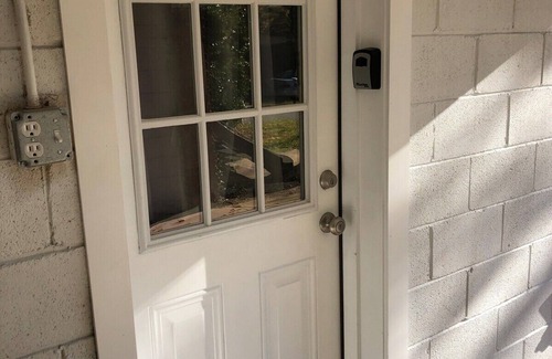 The entrance to the studio is behind the house. There is a large private driveway for you to park. You will also see a garage type area however it is quite small with low clearance and best suited for compact vehicles. We suggest not parking in it at all, however if you choose to do so you assume any potential risk of damage to your vehicle as it is a small space.