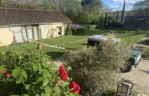 This holiday property is set in 40 acres of woodland and pasture with a private terrace and an outdoor swimming pool. The house is a renovated barn, practical, spacious and wonderfully bright. It has two bedrooms ( a double and a twin,) a shower room and a large open plan kitchen, living and dining area. (85m2) Double doors lead on to a terrace with BBQ and steps down to your parking space. This gite provides an ideal base for exploring the historic sights of the Dordogne (castles, churches....), visiting beautiful stone villages, swimming in the local lake. The Cahors vineyards are on our doorstep
