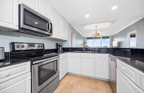 Our condo is in the Bristol tower, newly-renovated 2 bedroom, 2 1/2 bath. The decor is inspired by the waves and sand. The unit is decorated with calming inspiration taken directly from your expansive view. There is comfortable furniture offering a peaceful, clean place to unwind. Our condo has granite countertops, stainless steel appliances, and tile floors. There is a king bed in the master bedroom and a large private master bath, walk in shower (as of Sept. 2022) and separate water closet. The second bedroom is equipped with two twin beds and also has its own private bath with walk in shower. The couch provides a queen bed for additional space and there is a half bath which is convenient for all your guests. There are 3 TVs with the living area boasting a 65" smart TV.