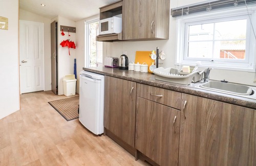 Broad Down is a detached timber lodge situated on a small exclusive park in the village of Berrow. The lodge has an open plan living area with kitchen, dining area and sitting area with electric fire, along with a shower room with shower, basin and WC. The lodge can sleep three people in two bedrooms, a double bedroom with en-suite basin and WC and one single room. Outside at the front, there is an enclosed decked area with furniture and off road parking for two cars. Broad Down makes a wonderful base for visiting the Malvern Hills, the attractive towns of Cheltenham or Gloucester, or just exploring the beautiful countryside of Worcestershire and beyond into Herefordshire and the Cotswolds.