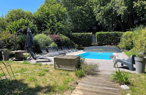 Yes, this Plumelin cottage has a swimming pool. Check the Facility Overview section for details about the pool and other available facilities.