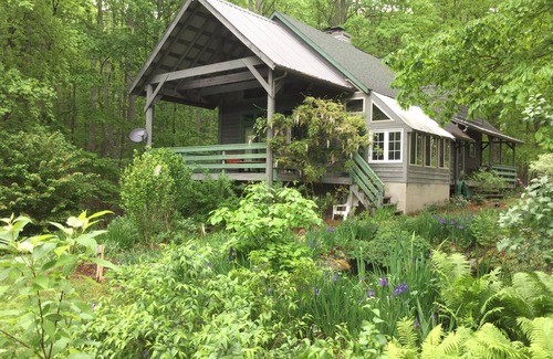 For the outdoor enthusiasts and nature lovers, the lodge offers remarkable opportunities for engaging with wildlife. Whether or not guests prefer a more passive "porch loving" approach or the "hiking experience," the lodge and surrounding acreage will be sure to satisfy everyone's needs. In the immediate vicinity, guests may spend time on any of the quiet covered porch areas, each with a different perspective and view of the adjacent gardens and forest. The front porch swing and surrounding decks overlook the forest and small native plant meadow which is a favorite spot for flocks of wild turkeys as well as a suite of native songbirds. The adjacent side porch overlooks a quaint cottage garden and koi pond, offering an assortment of colorful butterflies and insects in warm months. The two third-floor bedrooms have adjoining back balconies offering commanding views of the Jefferson National Forest-- a perfect spot for viewing wildlife and finding complete solitude.