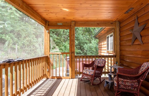 Secluded and quiet, our inviting cabin has a hot tub, deck with mountain views, porch, fireplace, outdoor fire pit, TVs (DVDs only, no service), and WiFi (satellite - videos & streaming not supported).