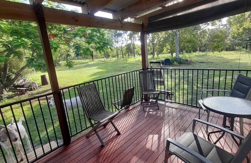 Pet friendly verandah has a gate to keep your dog safe. Air-conditioned Cabin set behind the main house.