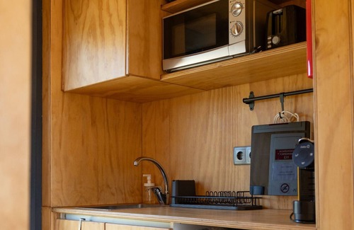 Each bungalow is a wooden cabin, open space style, with a living room, double bed on a mezzanine (access via stairs), a sofa bed, bathroom, kitchenette equipped with basic utensils for preparing breakfast or small dining and outside there is a balcony overlooking the land. Located in a small forest with Mediterranean characteristics, with all its imperfect beauty, it is a rural space with no commerce in the surroundings, but it is only a 5 minute drive from the city of Tomar (or around 1 hour walk along nature paths). Tomar, a city enriched by its imposing Convent of Christ and Castle flanked by the Sete Montes National Forest and with a beautiful historic center, with monuments, churches, the river and gardens. The river beaches are also a reference in this region in the summer.