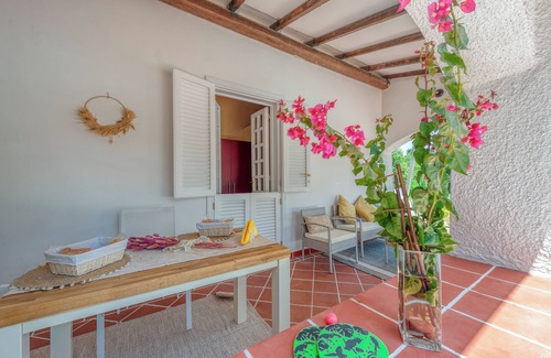 Five minutes from the sea, set in the Mediterranean park of Villa Paradiso, the host offers a bungalow by the pool with a double bedroom, kitchenette, bathroom, and exclusive outdoor veranda.