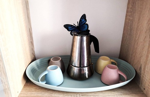 The Butterfly flat is located on the first floor in a residential building in the historic centre of Suna, consisting of flats on three floors with a garage for cars.