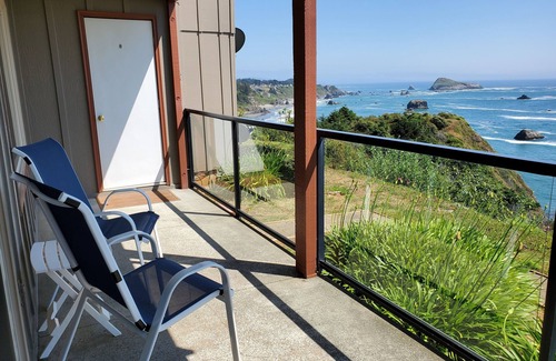 The gated condo complex sits on a bluff overlooking the ocean. There is a private nature trail with lovely bushes, trees, plants, and flowers from the complex to the secluded beach below, where you will find a small cave, rock cliffs with amazing colors, and plenty of tide pools to explore. If the trail is a little challenging for some, Harris Beach State Park is just south of the condos, and they have nice, large concrete walkways down to the beach. There is also Lone Ranch Beach just north of the condos that has easy access as well.