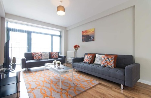 Stunning modern 2 bed, 2 bath apartment situated in Paisley, sleeping up to 6 guests. Our bedrooms can be set up as a kingsize bed OR as 2 singles, so each bedroom sleeps 2 people, plus there are 2 sofa beds in the lounge that can sleep 1 adult comfortably on each. Highchair and travel cot available on request.
