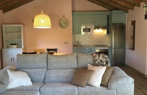 Esta casa cuenta con piscina con vistas y chimenea. Esta casa consta de 1 sala de estar, 2 dormitorios independientes y 1 baño con ducha a ras de suelo y artículos de aseo gratuitos. La cocina está totalmente equipada con nevera, utensilios de cocina, horno y microondas. La casa también ofrece barbacoa privada. La casa cuenta con lavadora, entrada privada, tetera, cafetera y terraza . La unidad ofrece 3 camas. A! y en una casa de la Aldea puedes comprar , Leche recién ordeñada , chorizo casero, queso, huevos de corral auténticos, alfilada casera y mantequilla casera
