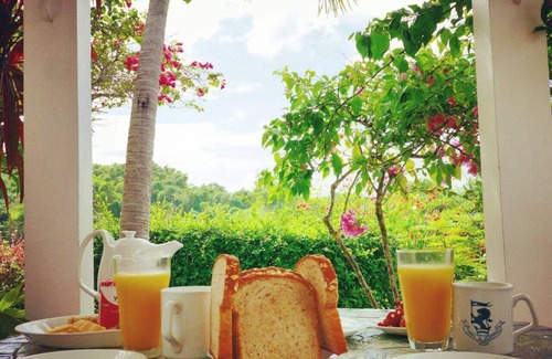 Cabana 1 at Top O’Tobago is ideal for a couple on a romantic getaway, a young family, or a group of 4 singles on a weekend adventure. It is a studio apartment with an outdoor dining gazebo and garden. It is the topmost of the 3 cabanas at Top O’ Tobago, and the swimming pool is a few steps away. You can walk to Arnos Vale Beach, one of the island’s best snorkeling beaches, and it is a 25 min. drive to the airport and the many tourist activities on Tobago’s south. Silja, our manager, lives onsite