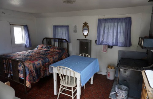 Please note: This is a rustic cabin, meaning there is no bathroom inside. We have a climate-controlled shower house with bathrooms behind the store building.