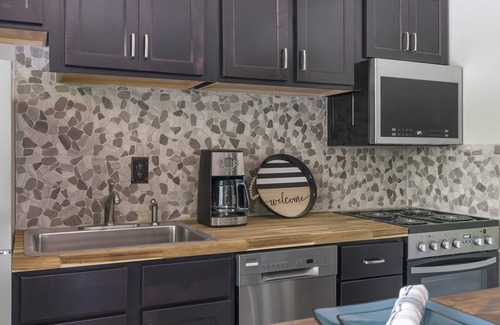 Welcome to White River Cabin! Experience the convenience of staying at this stunning cabin, which is situated close to all the attractions your family desires. With Silver Dollar City just a mile away and other main Branson attractions within approximately 5 miles, you'll have easy access to all the fun. Unwind on the porch of this tranquil wooded resort or take a dip in the hot tub or pool after a day at Silver Dollar City. In the evening, gather around the resort firepit with your loved ones to create lasting memories while making s'mores. Inside the cabin, you'll find a fully equipped kitchen, a cozy king bedroom, and a bathroom with a tub/shower and separate vanity. The living room features a sofa bed and a set of bunks with full over twin mattresses. Stay connected with WiFi throughout the cabin. M&M Property Management of the Ozarks is excited to welcome you and your family to create unforgettable memories.