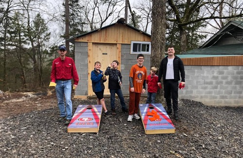 We provide cornhole boards and bags, ping pong table, volleyball court, basketball goal, dart board, and other board games for guests. Our common area is available for all guests and includes a large dining area with tables and chairs. Other amenities include a large kitchen/cooking area with refrigerators, freezers, microwaves, ovens, and coffee makers. Vending and ice machines are also available with washer, dryer and dishwasher with dishwashing sink.