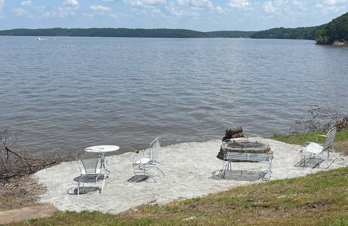 Grand Lake at your fingertips staying in 1 of 4 open concept cabins at Stony Point. Behind the gates of this 20-acre resort, you will find time to swim, boat, jet ski, fish, layout, cookout, relax or pretty much anything else you decide to do while on vacation at the lake! We have a grill and a fire pit for evening fun. It sets on Stony Point, offering thousands of feet of waterfront to enjoy, large pavilion, 2 boat ramps, boat dock for use and a swim dock. We also rent, water toys such as tubes and floating mats, kayaks, paddleboards and paddleboats and golf cart too! Invite your friends, we have 4 of these cabins and The Lodge that sleeps up to 20. More amenities coming soon... Cornhole, playground set. Please feel free to let us give you a tour of the resort. 9182537079