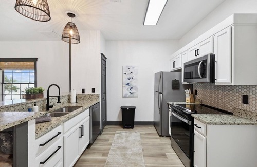 Cabin #23 at PK Lake! Situated just across the street from the lake, and a short drive to the restaurants. This adorable 2-bedroom, 1 and 1/2-bathroom sleeps 6 people and has all essentials (free WiFi, a Smart TV’s, and a full kitchen).