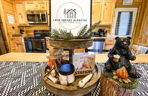 Take full advantage of DeGray Lake State Park and all of it’s amenities! The cabins are located right next to the park. We have three cabins available. This listing is for the large cabin. It is 960 sqft with one king bedroom, one queen bedroom, two bathrooms (one handicapped friendly), and an open living area with full kitchen. The cabin sleeps up to 8 people. Bed arrangements include: 1 King, 1 Queen, 1 Queen sleeper sofa, and 2 fold out single sleepers. The backyard is fully fenced with privacy fencing. We are pet friendly with no added pet fees!