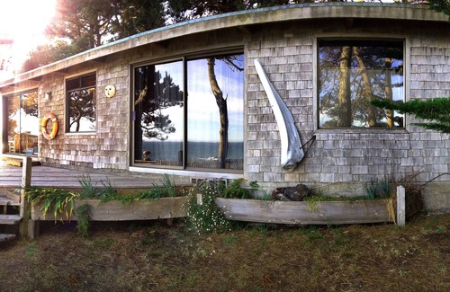 Nestled right on an ocean cliff just off California's beautiful Highway 1 Stand on the deck as low tide reveals the rocks where abalone abound. Crashing of the surf is always on hand and steps down to the ocean are located just across the driveway. Whales may be seen during their annual migrations, and sea lions reside on two small islands just up the coast. Cabin 5 is rustic and cozy. With a full size sauna and Fire Pit. All rooms but one are built from redwood, and the home is completely furnished with bedding and linens, and including fireplace, forced air heating, free internet access, and DirectTV . Both bedrooms have wonderful white water views. The kitchen is small but functional with coffee maker, coffee grinder, stove, oven, toaster, refrigerator and microwave.The home is located two miles north of the small town of Gualala which has galleries, restaurants, gym, bookstore, and several spas. Five miles to the south is the eighteen hole Sea Ranch Golf Course. Other activities include kayaking on the Gualala River estuary or visiting the historic Point Arena Lighthouse located just ten miles to the north. Cap off your day by sitting on the deck with a glass of wine while watching the sun go down.