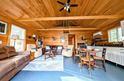 Escape to the serene beauty of Maine with this unique vacation rental on the shores of the pristine crystal-clear water. Ideal for families, your kids will think you are super cool with their own private yurt! It provides the perfect combination of comfort and nature. Swim out to the float, wade in the water on the sandy beach, or watch the sunset from the fire pit with s'mores.