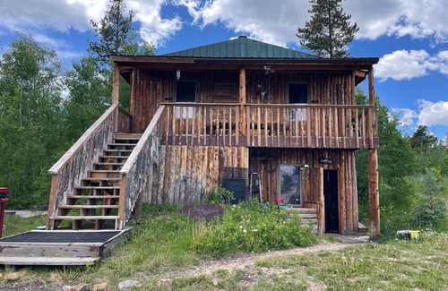 Come stay at this wonderful cabin with a wonderful view of the mountains as soon as you wake up. There is a bathhouse (there are no bathrooms in cabin) has both mens and womens side. Each side has two toilets, two showers, and sinks with towels for your use. Each room has a microwave, mini fridge, and coffee maker. Propane grills are also available. Ask about other sevices and horseback rides. We are a fully operational outfitter. We have livestock and pets on the property.
