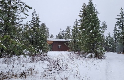 This newly built 300 sq-ft cabin is surrounded by trees and wildlife, and has everything you need including a washer/dryer, electric heat and a wood-burning stove, a back patio BBQ grill, a Peet boot dryer, and plenty of parking for ATVs or toy haulers. There is a TV with DVD/Blu-ray player and an assortment of movies. The kitchenette has a two-burner hotplate, toaster oven/air fryer, microwave, coffee pot, electric kettle, Crock-pot, toaster, minifridge/freezer, and all dishes and cooking utensils, Basic seasonings, cooking oil, ground coffee, etc. are also provided. The bathroom is stocked with 100% cotton towels, toilet paper, shampoo/conditioner, soap, a hair dryer, and laundry soap. It sleeps three adults with two twin beds that can be used as a King bed, as well as a twin pull-out sofa chair. An additional twin is also on site for a 4th person. 100% cotton linens, blankets, and pillows are provided. Minutes away from prime hunting, fishing, snowmobiling, and hiking.