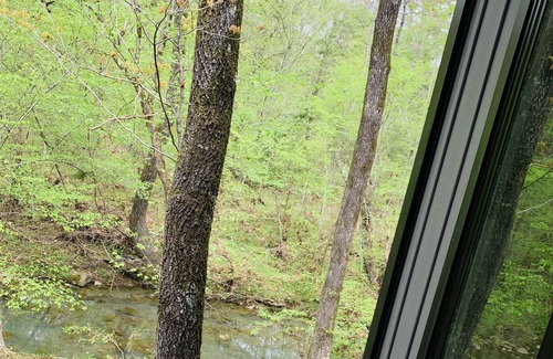 The Whiskey Bear is a newly constructed cabin tucked away in the woods and surrounded by wildlife. It is located right next to the Ouachita National Forest near the Choctaw Nation Trail and K-trails at Billy Creek Recreation Area. This unique cabin has direct access to the best SXS-ATV trails, hiking, and horseback riding, making it an ideal spot for outdoor enthusiasts. The cabin boasts a tranquil atmosphere that also features an extra-large hot tub with multicolored LED mood lighting for relaxing under the night sky next to a seasonal creek. Whiskey Bear has all the amenities complete with fully equipped kitchen and outdoor grill. The wrap-around porch provides a peaceful place to unwind, and the upstairs loft has a balcony that overlooks the creek and surrounding trees, offering a serene place in the treetops to read a book or enjoy a morning coffee. The cabin is perfect for those seeking a quiet retreat in the midst of nature.