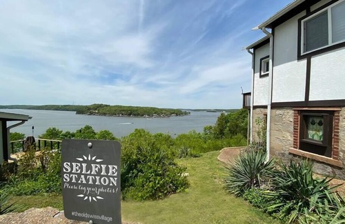 Rustic charm + Modern amenities. Our 1930's Cabin rests atop one of the most sought after view corridors at the lake. Over 100 feet above the water offering views of local Firework shows, gorgeous sunsets and a spectacular vantage point when there is activity on the lake. Nestled away in the wilderness, peaceful days and nights are many. Located in the heart of Osage Beach with nearby lake access at the state park, steak house adjacent to property and a wine bar.