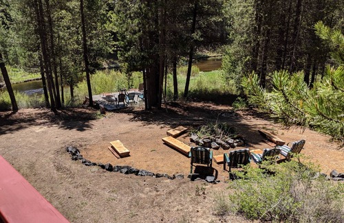 A peaceful and private retreat located on 1.5 acres in Crescent Lake Oregon. 'Riverside' has two cabins, the Main cabin is a 2-bedroom, 1-bath cottage, the smaller cabin is a half bath 1-bedroom, nestled beside the Crescent Creak with slow moving water.. The location offers direct access to endless marked trails, natural sites and abundant wildlife. These cabins are set in a private place with a horse area. Hot Tub for 7, a deck on the mellow stream great for floating . Enjoy Cascade Mountain views and serene surroundings at this high-desert hideaway, only minutes from the breweries, boutiques and eateries in Oakridge, Crescent, Crescent Lake, La Pine, Sunriver and Bend!