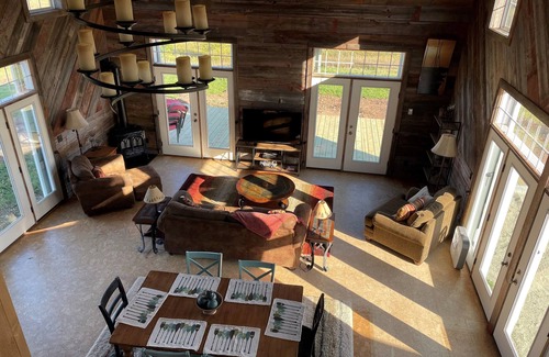 A one of a kind Vacation Cabin Rental with lots of rustic charm. This cabin sits on an 80 acre farm with lots of wildlife, birds and great walking trails.