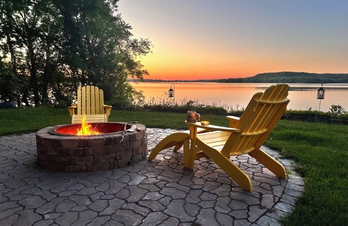 There is an outdoor dining table with 6 chairs, 2 lounge chairs with cushions, 4 adirondak chairs and a hammock for your use. Walk down to the dock for some sunning, canoeing or fishing. Enjoy the warmth of the fire pit overlooking the lake, toast marsh mellows, tell stories and simply just relax under the stars.