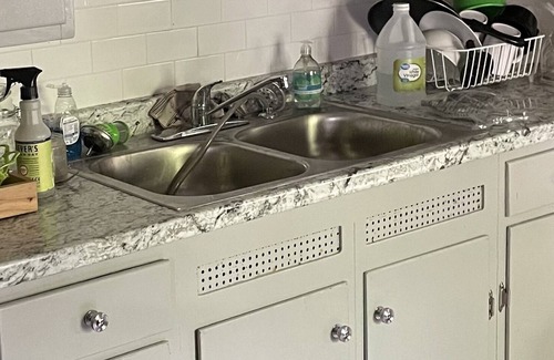 This two-bedroom cabin is located on a quiet street. It offers a yard with many trees, a porch, free parking, and use of the entire house. The cabin is located about 1/2 hour from Surfside Beach and about 1 hour from Galveston Beach. The kitchen has a full stove, mini-refrigerator, and all the cooking essentials needed. Enjoy the included wifi and television.
