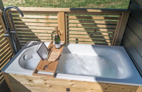 Cabin, with deck and outside bath in woodlands | Cabin in Balfron Station