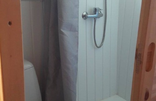 A cabin with kitchen area with microwave/grill, bathroom with toilet and shower, sleeping area for 2 people + dining area with fridge and sink. In an annex, a covered jacuzzi exclusively reserved for the occupants of the cabin.