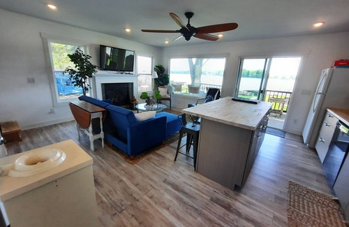 Brand new and clean family cabin! 21' Ercoa pontoon with 50hp 4 stroke Honda motor on the dock ready to rent. (Please contact host for details) This cabin was completely renovated in 2020 to a 4 season escape just 45 minutes north of the cities. Beautiful western sunset exposure consisting of a wall of lake facing windows, open floor plan, large center island in the kitchen, 2 bedrooms and a loft, and 1.5 baths. There is a large deck on the 2nd floor perfect for relaxing with your morning coffee soaking in all that the lake has to offer. Both bedrooms have a patio door onto the deck. The property has a flat, grassy lake lot only steps from the water that is perfect for hanging out playing yard games. Also a sandy beach and large campfire pit along the shore. There is also a new dock.