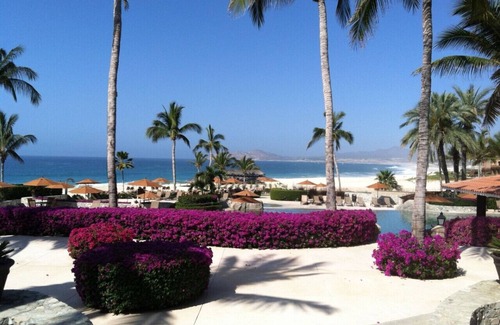 This February 10th to the 17th week INCLUDES 12 ROUNDS OF FREE GOLF at either Cabo Real, Campestre or Puerto Los Cabos courses. The condo features custom contempoary style decor in every room, stainless steel kitchen appliances and granite counter tops. Each room includes hand selected, beautiful artwork, quality furniture and fine linens. You can accommodate up to 8 people. The condo features a large master suite with a king size bed and full bathroom. The second bedroom suite has two queen size beds and a full bathroom. The 3rd Master suite includes a king bed and private bath. The two main bedrooms are separated by a large living room area, affording all bedrooms maximum privacy - the perfect set-up for a family or a group of adults traveling together. The large balcony space provides enough room outside for a dining table and lounge chairs ---all completely private! This exclusive, world-class Zoetry Casa del Mar Hotel and Resort is located in the Los Cabos “Corridor”—mid-way between the bustling tourist community of Cabo San Lucas and the quaint, art-filled town of San Jose del Cabo. You have easy access via car or private transportation from the airport. Casa del Mar is a first class Five Star Hotel and condominium community with the benefits and amenities of a high end boutique hotel – fine restaurants and bars, spa, world renowned golf courses, room service, beach chaise lounges with wait staff and many inviting swimming pools set in lush tropical landscaping. There is even a separate children's pool with a large grassy area for lounging. The hacienda-styled complex is gated and has 24 hour security. This is not a high-rise resort; no crowded beaches...Casa del Mar offers beauty and elegance without the commercial trappings and crowds of many Los Cabos resorts. This property books on a Saturday - Saturday week only.